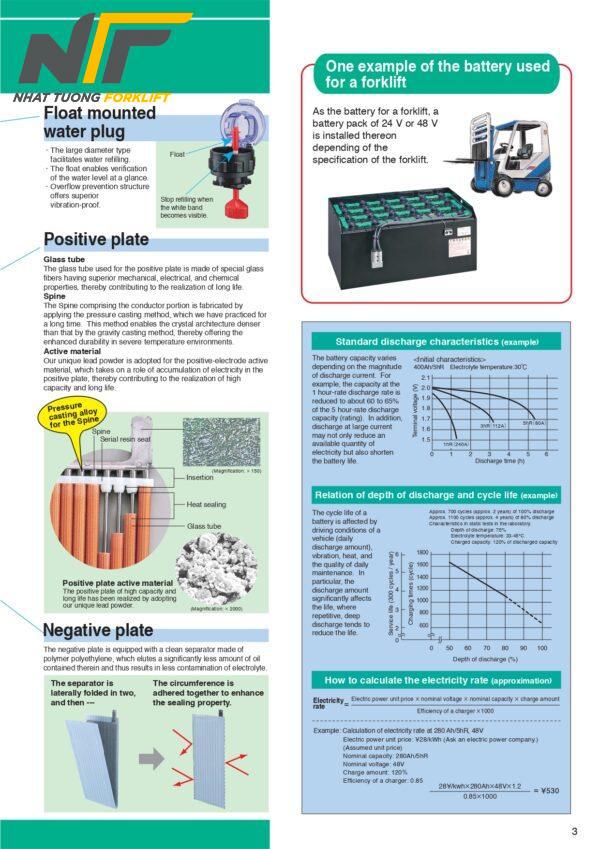 - Bình điện có khối lượng lớn để đảm bảo sự cân bằng cho xe khi nâng – hạ hàng hóa.