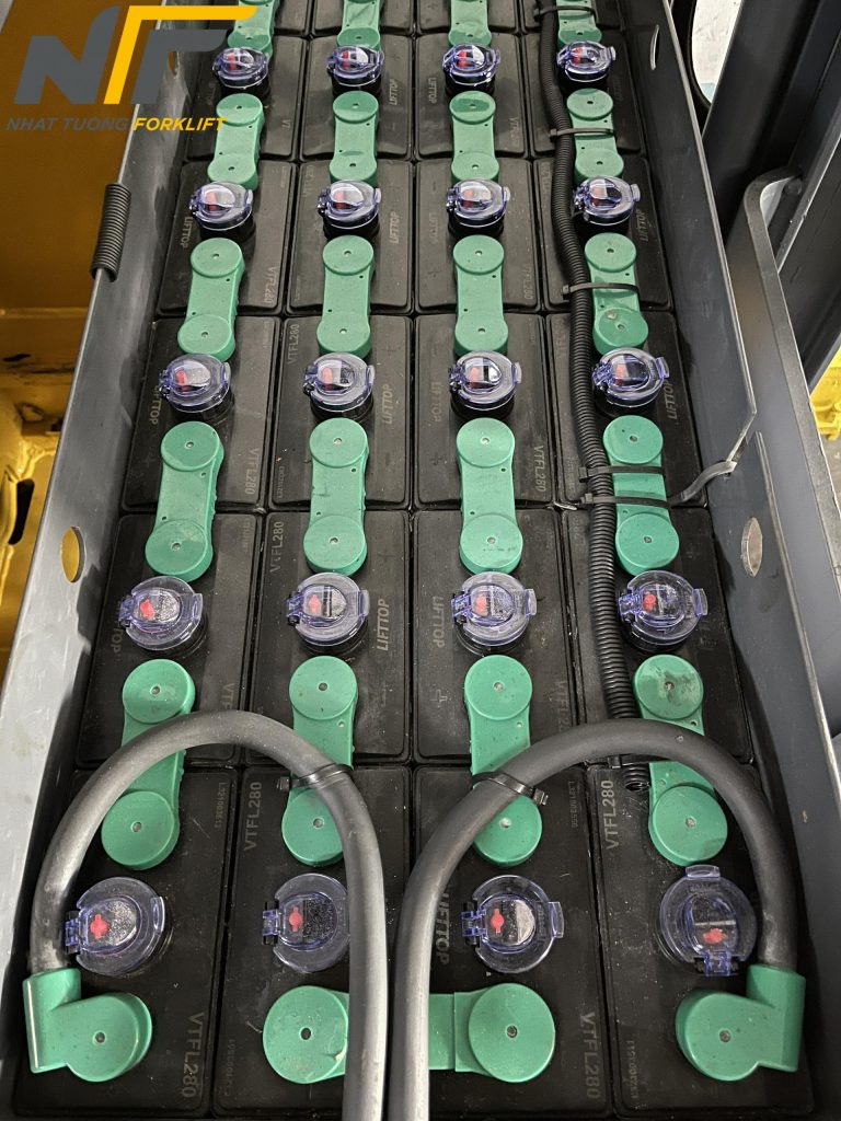 Điện áp (V) và dung lượng (Ah) phải trùng khớp với thông số của xe nâng.