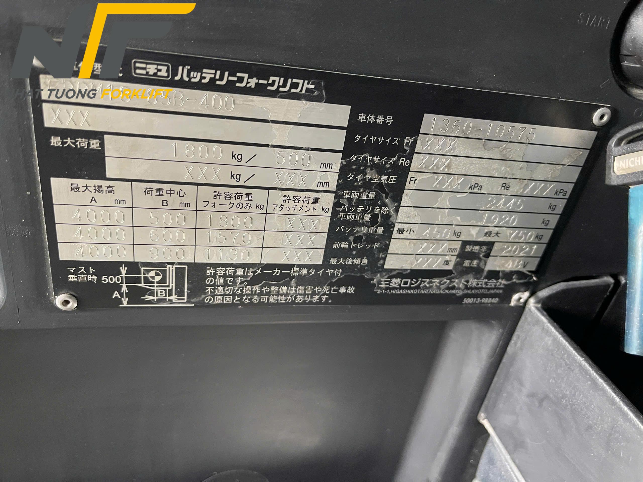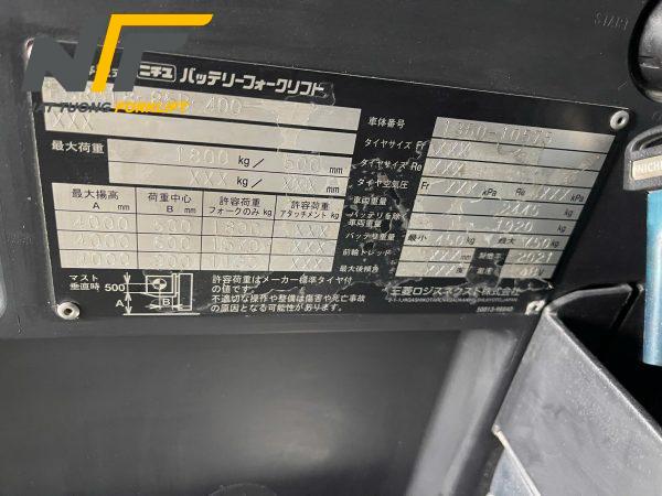 Thông số kỹ thuật xe nâng điện đứng lái 1.8 Tấn – Hiệu NICHIYU PLATTER qua sử dụng nhập khẩu chính hãng nhập khẩu Nhật Bản
