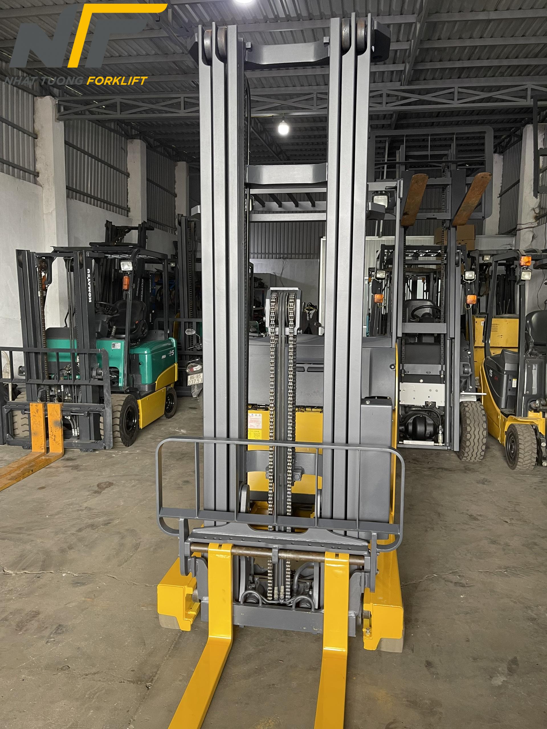 - Loại Xe Nâng:Xe nâng điện đứng lái – Thiết kế giúp người vận hành đứng lái, dễ dàng điều khiển và quan sát.