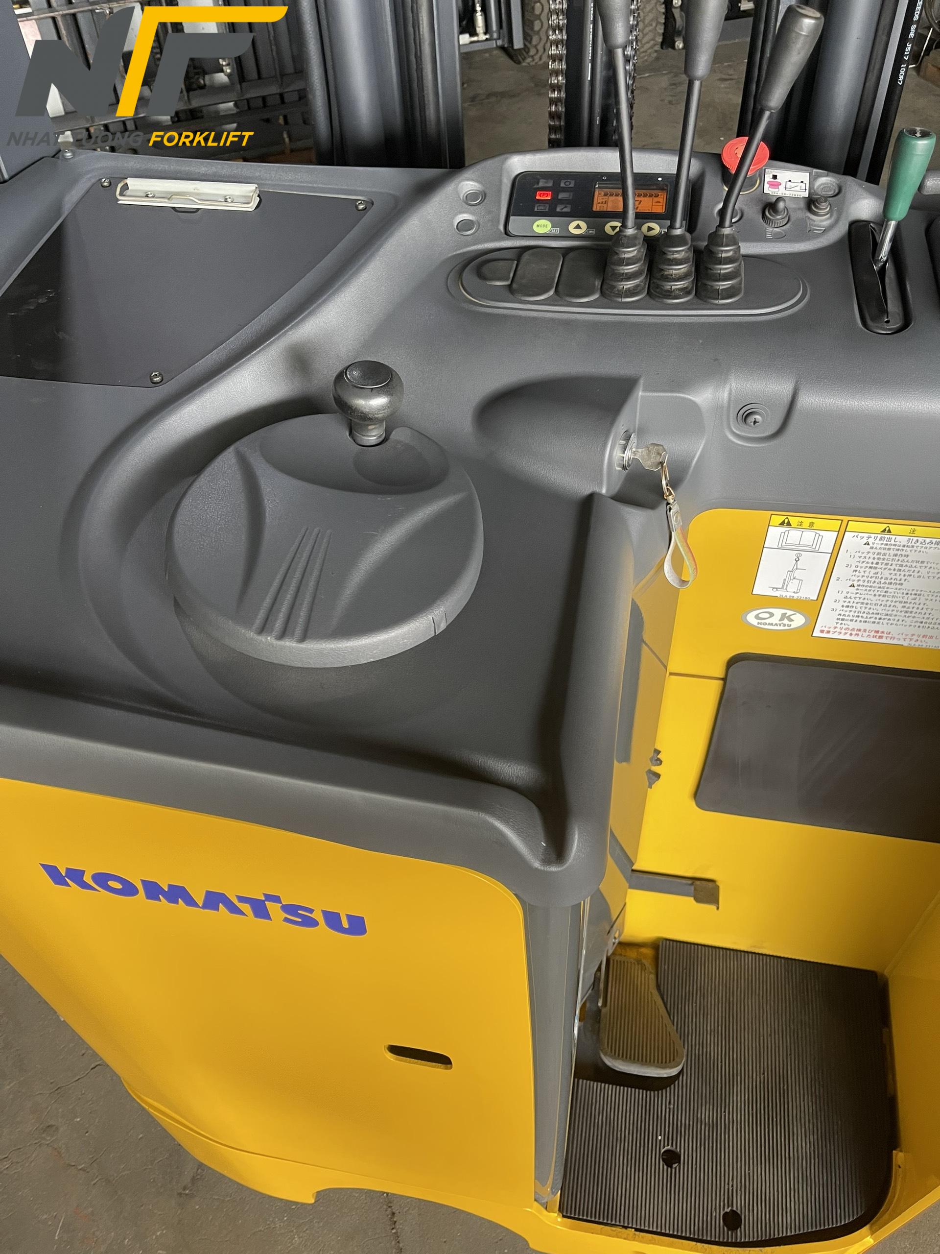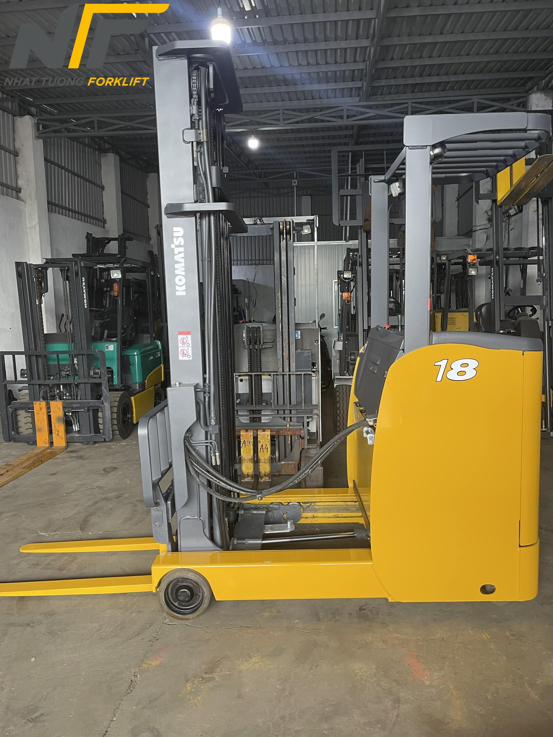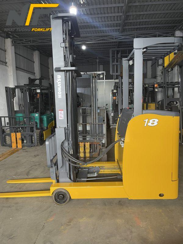 Xe nâng điện đứng lái Komatsu 1.8 tấn giúp nâng cao và di chuyển hàng hóa nhanh chóng, giảm thời gian cần thiết để hoàn thành các công việc trong kho.