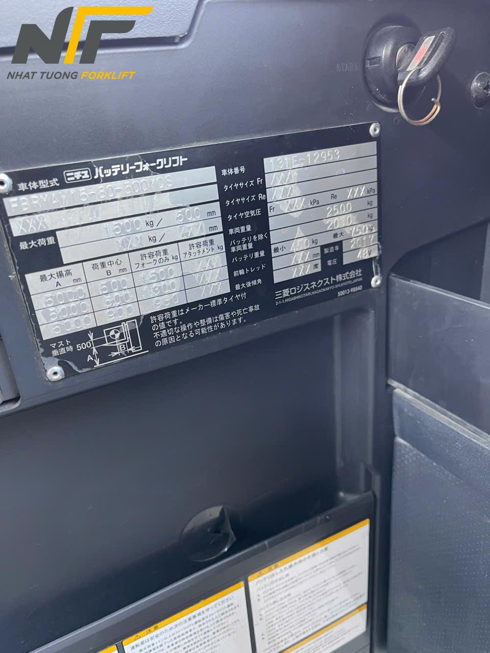 Catalog xe nâng điện Nichiyu Platter: XE NÂNG ĐIỆN ĐỨNG LÁI NICHIYU PLATTER 1.5 TẤN FBRW15-80B-450MCS